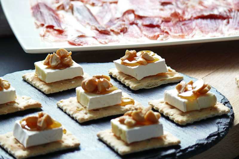 Pues este sencillo aperitivo, mezcla de dulce y salado con sus contrastes, se prepara en 2 minutos si tenemos los ingredientes necesarios, incluso da pie a personalización (lo queríamos preparar con nueces) y te salva de tomarte la cerveza del domingo a palo seco.